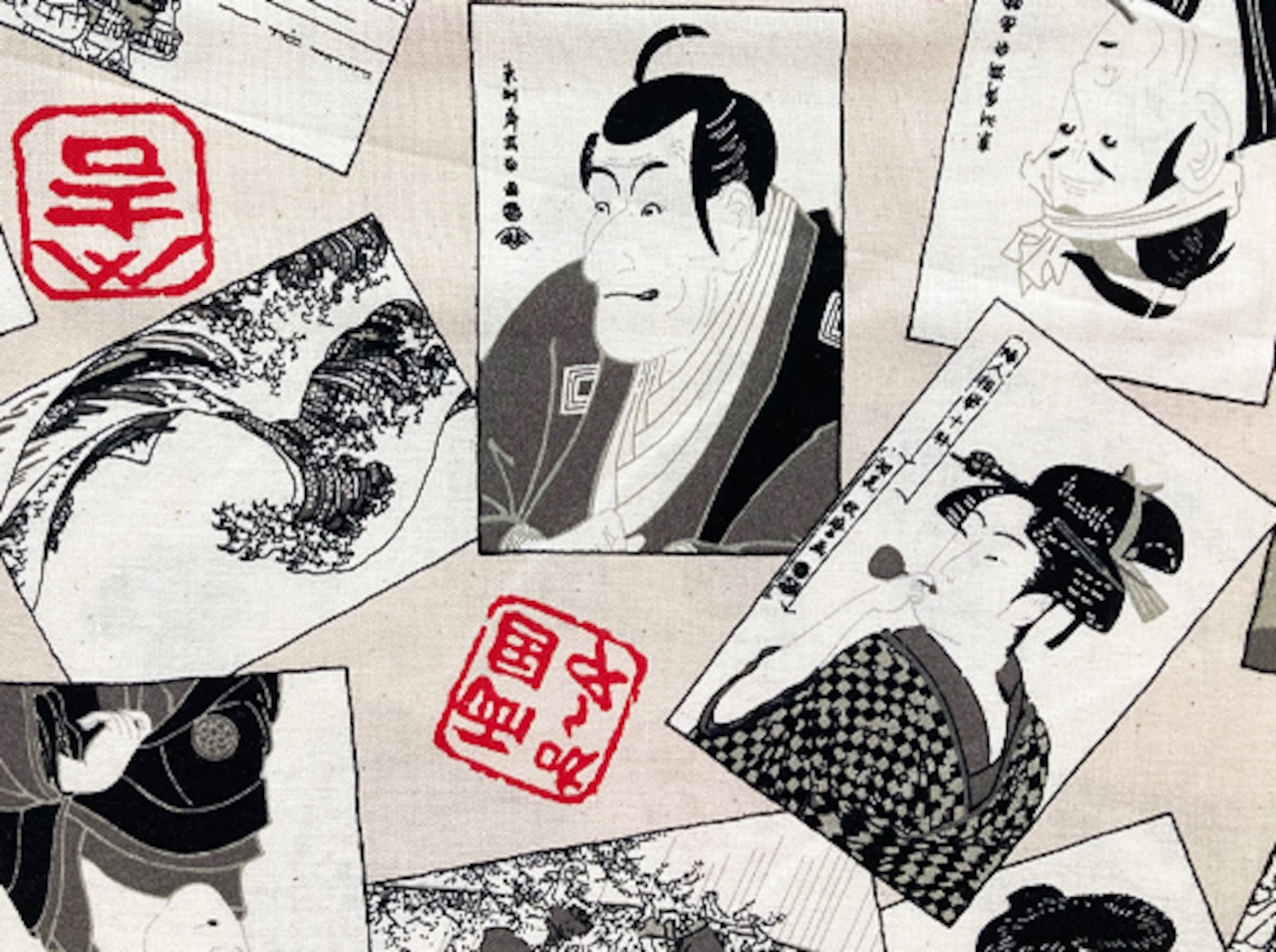 浮世絵 が散りばめられた伝統柄。