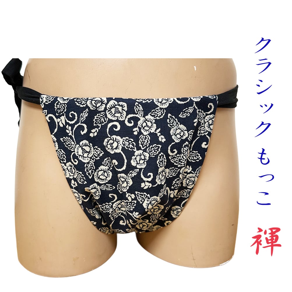 【こだわり工房】ふんどし もっこふんどし クラッシックモデル 長方形 台形 2モデル 唐草牡丹 藍色 日本の伝統柄 褌 日本製 男性 女性 子供 S M L LL ちょこっとオーダー可 | こだわり工房