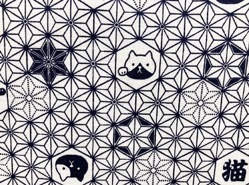 麻の葉柄をバックに 猫の可愛いコラボレーション!