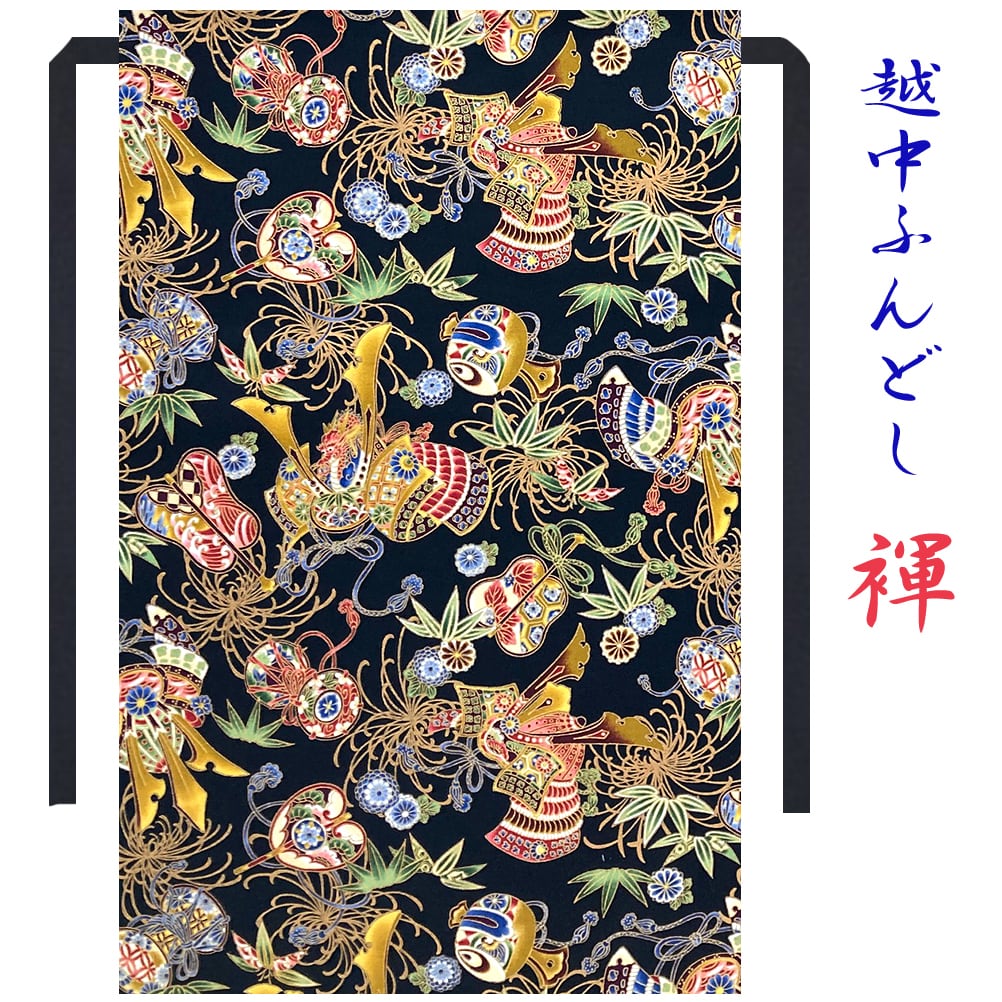 【こだわり工房】 ふんどし 越中ふんどし 極シリーズ 兜 侍 武者 豪華絢爛 金彩プリント ブラック 和柄 ちょこっとオーダー可 男性用/男子/メンズ/(L) 女性用/女子/レディス(M) 子供用/キッズ(S)