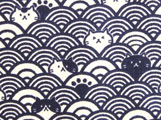 ■ 和柄 猫 青海波 キナリベース 紺色 赤 黒