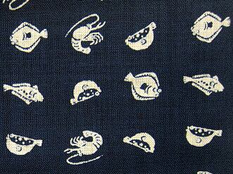 ■柄 和柄 和柄 海の幸 カラー:藍染調プリントベース